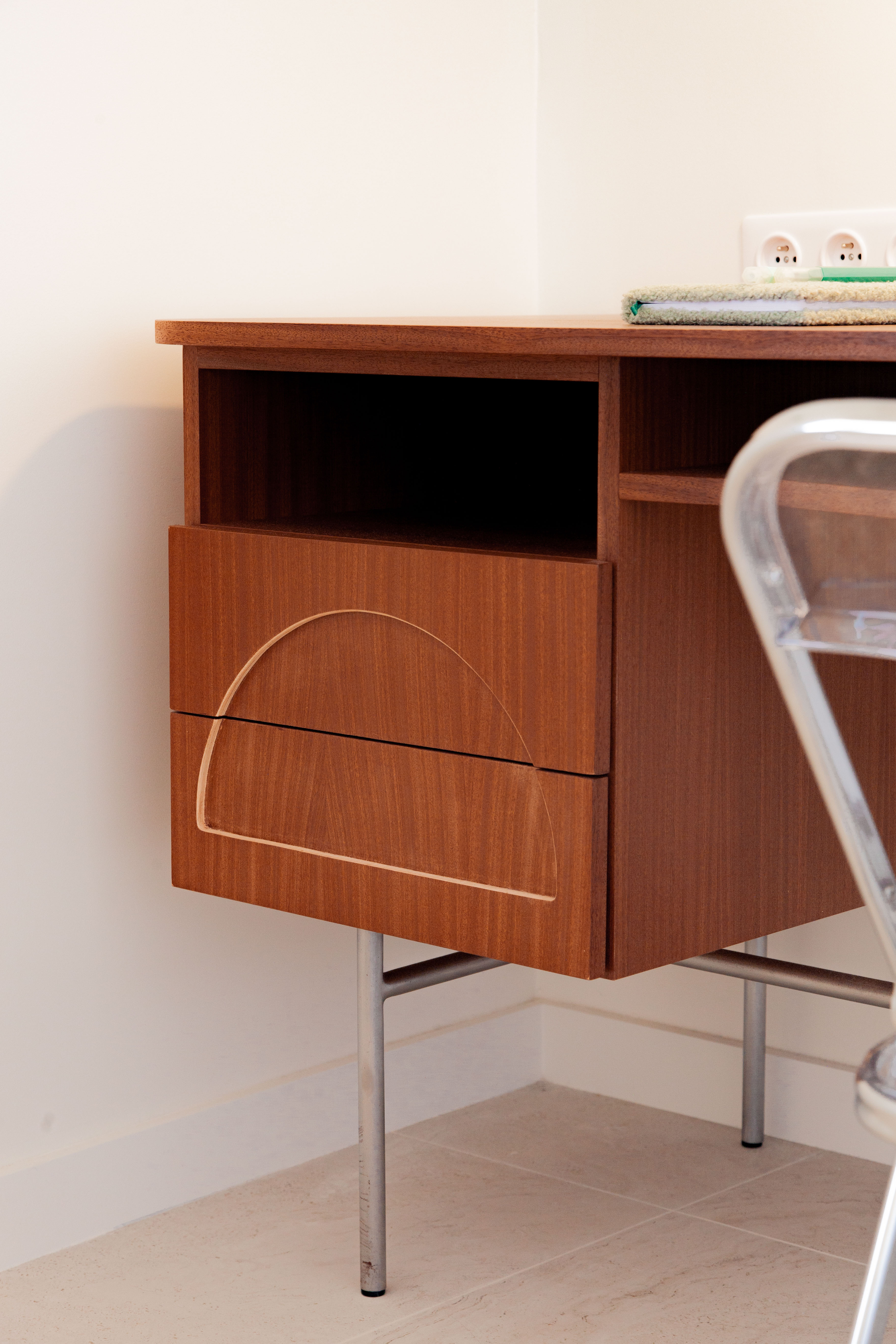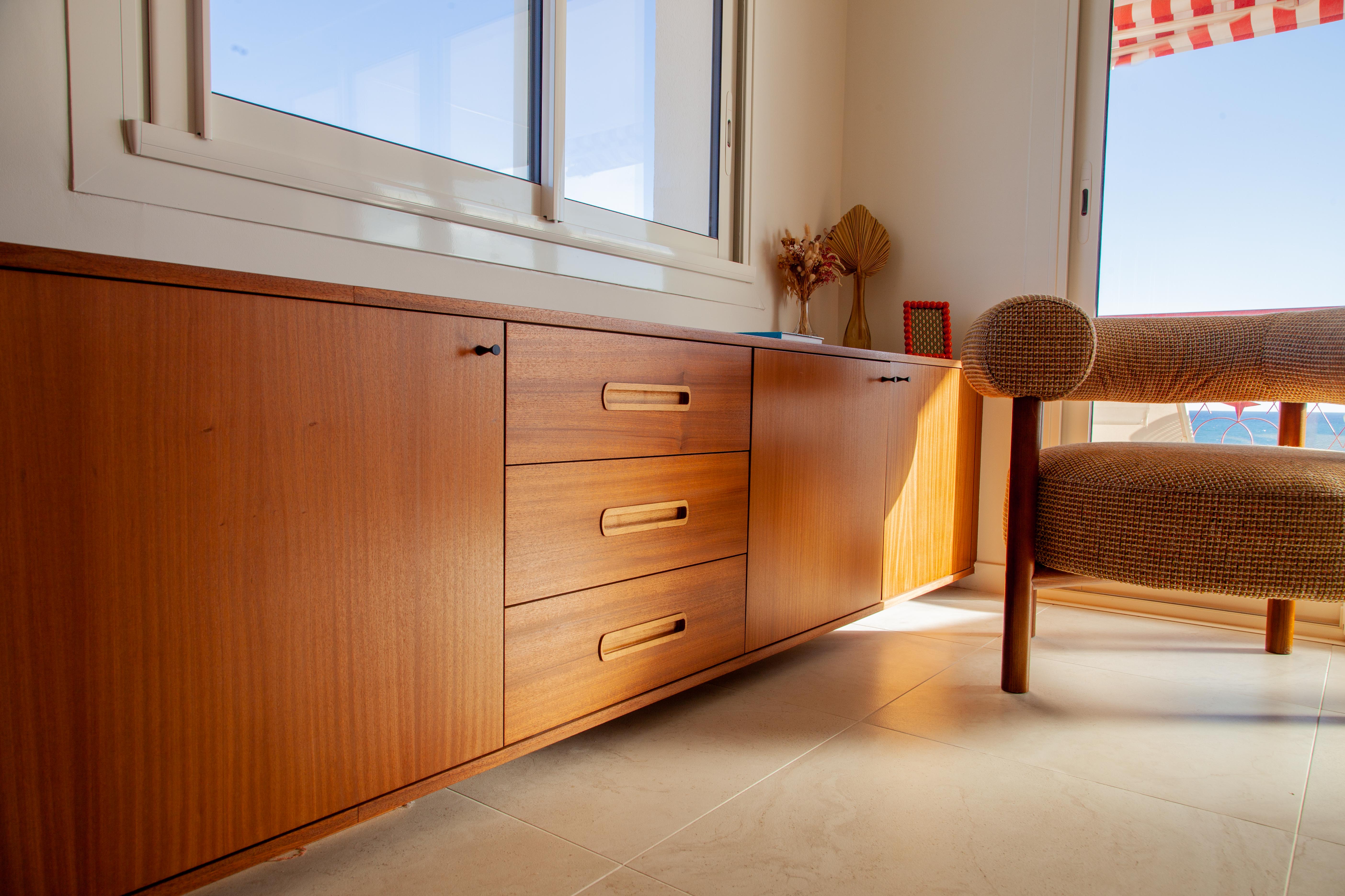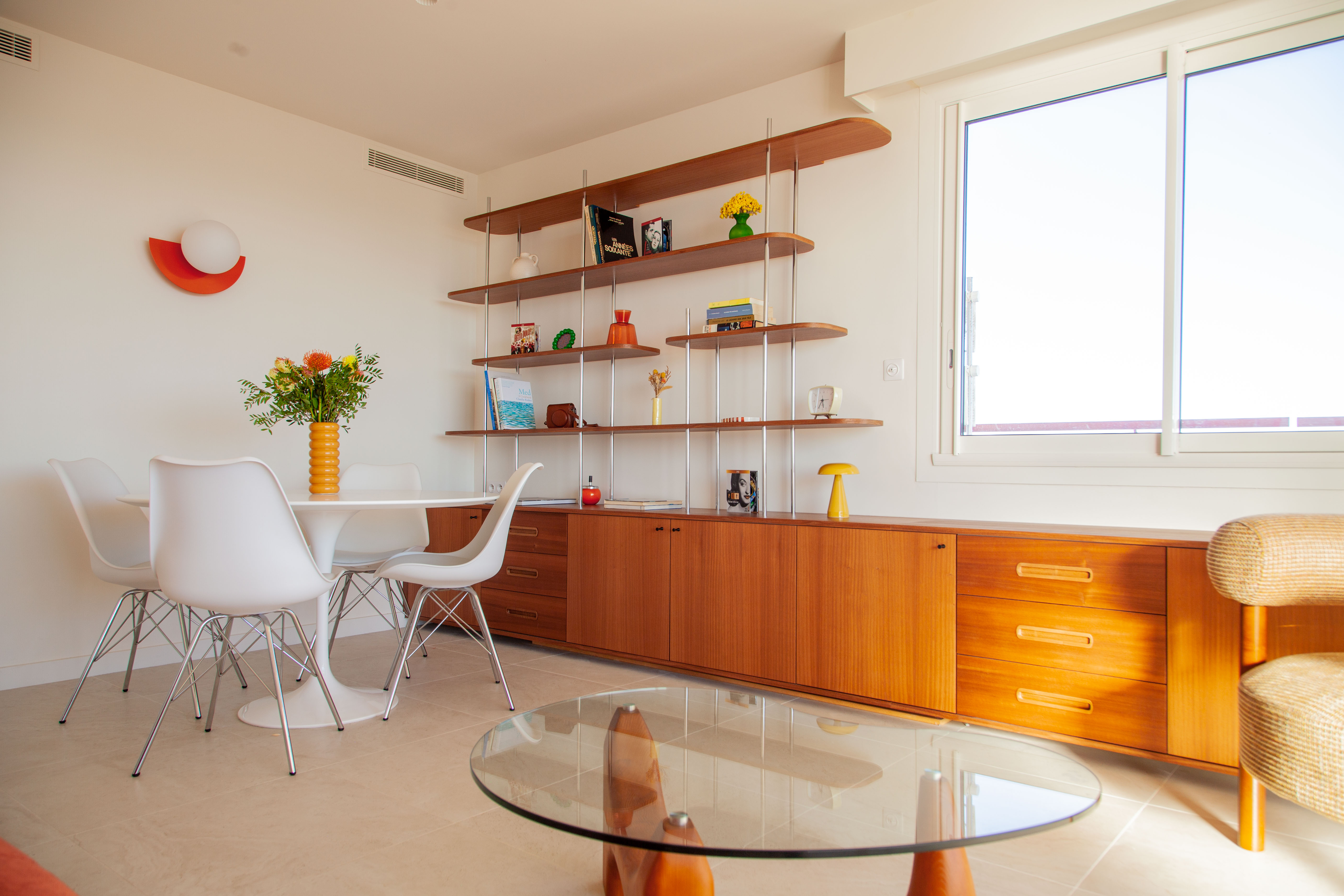 Rénovation d'un magnifique 3 pièces dans le Sud de la France, qui était resté jusqu'à présent totalement dans son jus des années 70, et qui possède une vue sur la mer Méditerranée époustouflante. La transformation a été totale, avec notamment un remplacement de tous les sols, portes et fenêtres de l'appartement, la création d'un WC séparé de la salle de bains, et la conception de nombreux meubles sur-mesure.